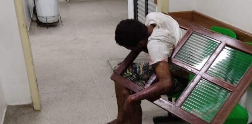 Segundo os agentes, ele foi socorrido pelos próprios moradores da casa que pretendia invadir. Na unidade de saúde, mesmo com ajuda de um equipamento para cerrar a madeira da janela, os médicos tiveram trabalho para retirá-lo da peça.